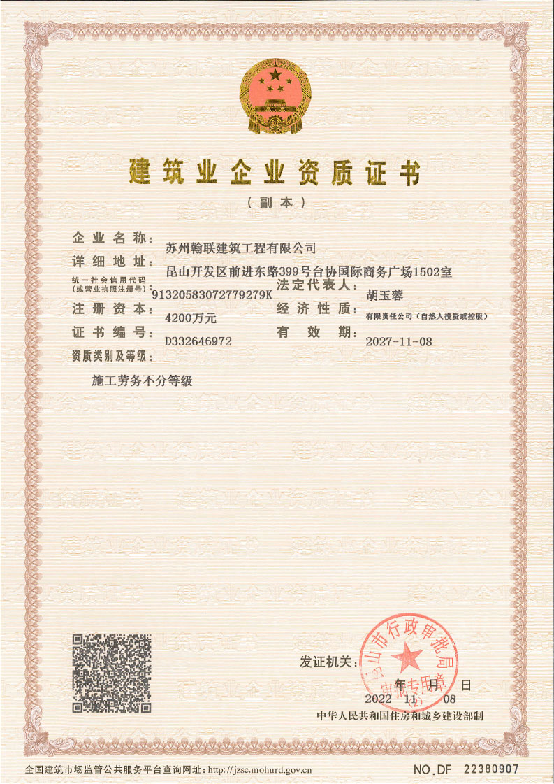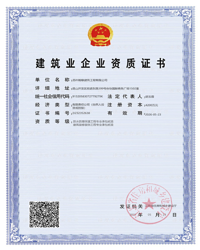 开元旗下app成立于2013年,是一家设备多样、技术过硬、诚信经营的工程承包服务商,公司具有房建总承包贰级资质、防水防腐保温工程专业承包贰级资质、劳务分包资质、建筑装修装饰工程专业承包贰级资质、具备施工总承包能力,承建项目众多,拥有良好的资质保障与服务标准。2019年,公司与专业防水开元旗下app服务商“东方雨虹建筑修缮技术有限公司”达成战略合作,成立东方雨虹建筑修缮(昆山)服务中心,凭借核心特种功能防水材料、国家重点实验室、国家认定企业技术中心、院士专家工作站、博士后科研工作站及优秀的研发技术,形成多套完善的建筑修缮防护体系,为各类建筑提供专业化、规范化、高品质的修缮、翻新、加固等服务。