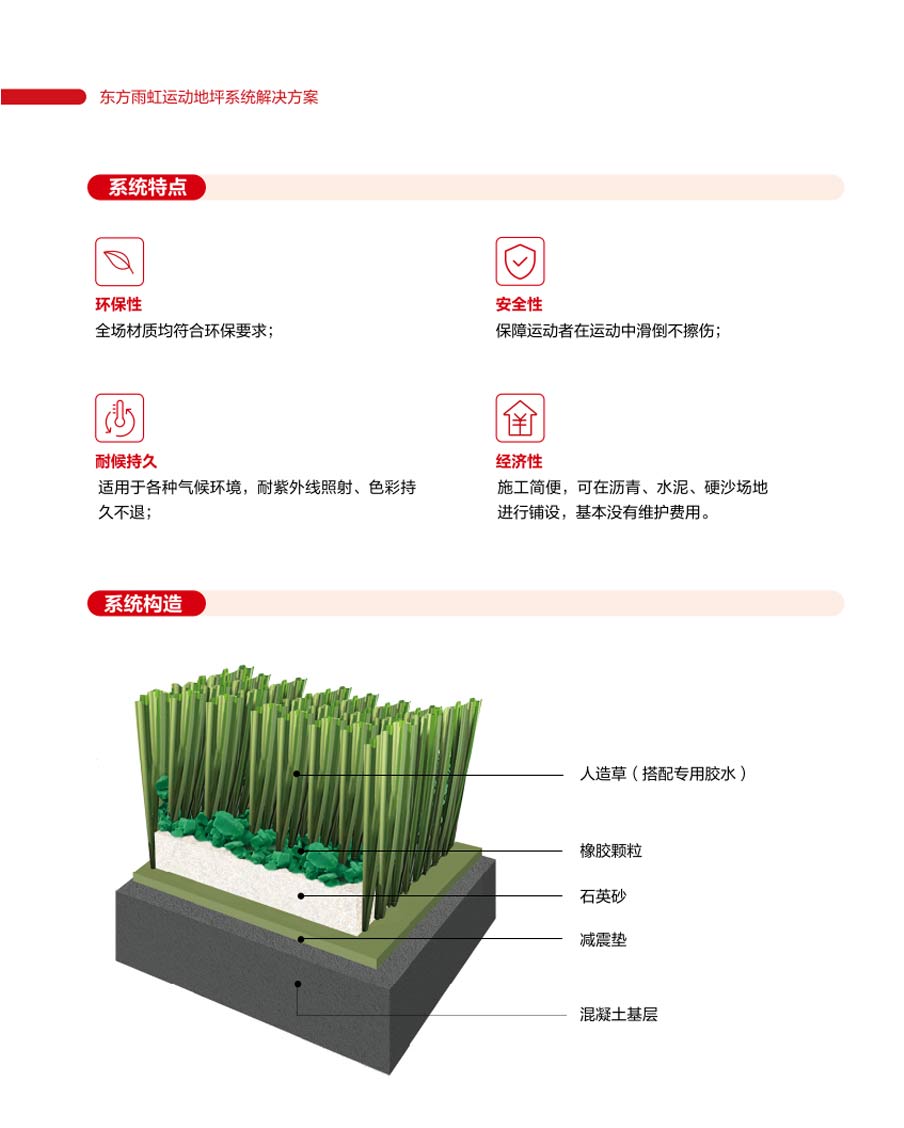 在响应国家号召与迎合市场需求的前提下,东方雨虹依托二十余年来建筑建材开元旗下app服务经验,为各类学校体育场馆、医疗机构、大型工厂、办公园区、小区等应用场所提供绿色环保、安全可靠的运动地坪开元旗下app解决方案。